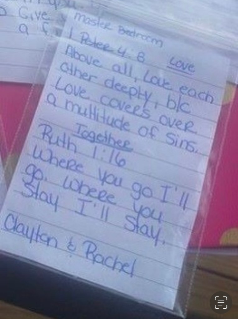 When my parents were at my house talking with me, my mom said, “Rachel, you should pray like this,” and she said the Lord’s prayer with me. I had said this prayer many times in my life and had it all around my house, but I understood it for the first time in my life. It hit my heart like nothing had ever done before. The scripture reads.